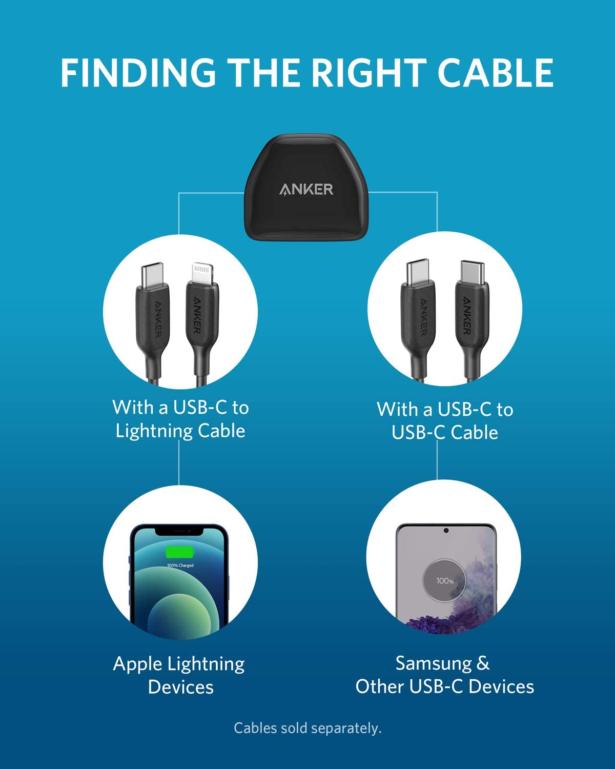 - Use a USB-C to Lightning cable for Lightning devices and use a USB-C to USB-C cable for USB-C devices (Cables sold separately).