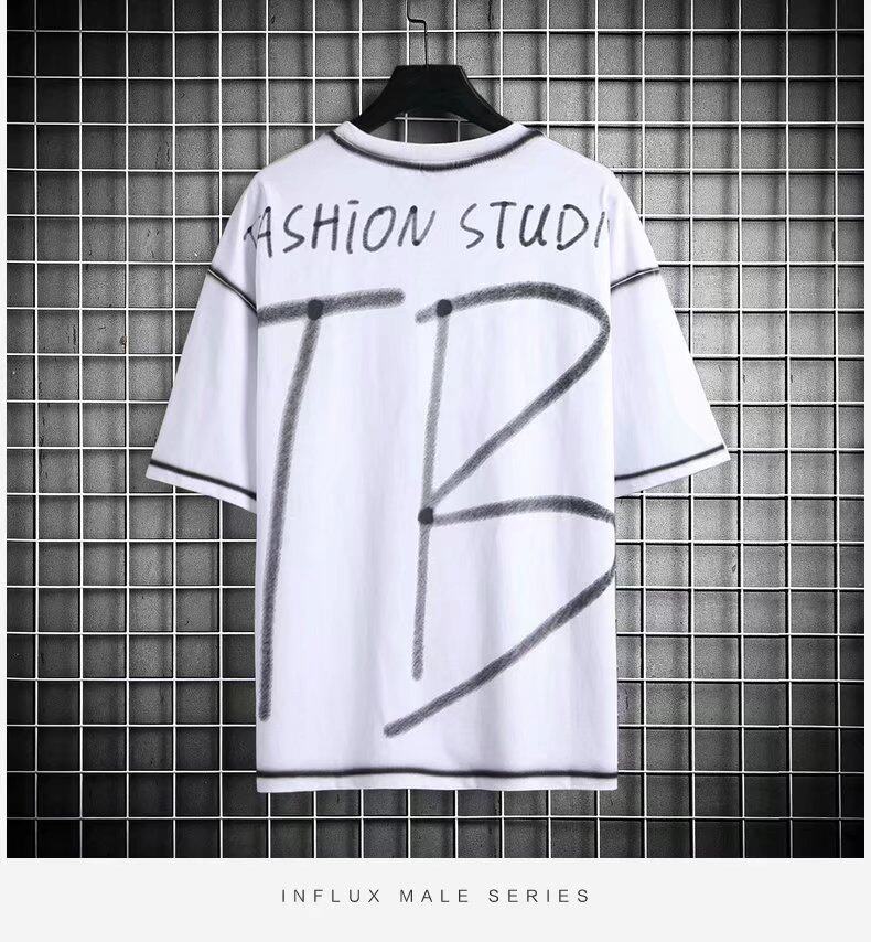 t shirt Men Korean Style Loose Short Sleeve Fashion Tops Casual Graffiti Print t-shirt