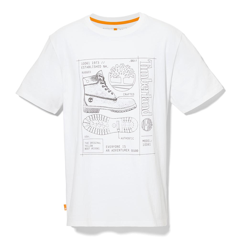 Timberland All Gender Blueprint Boot Front-Graphic T-Shirt White