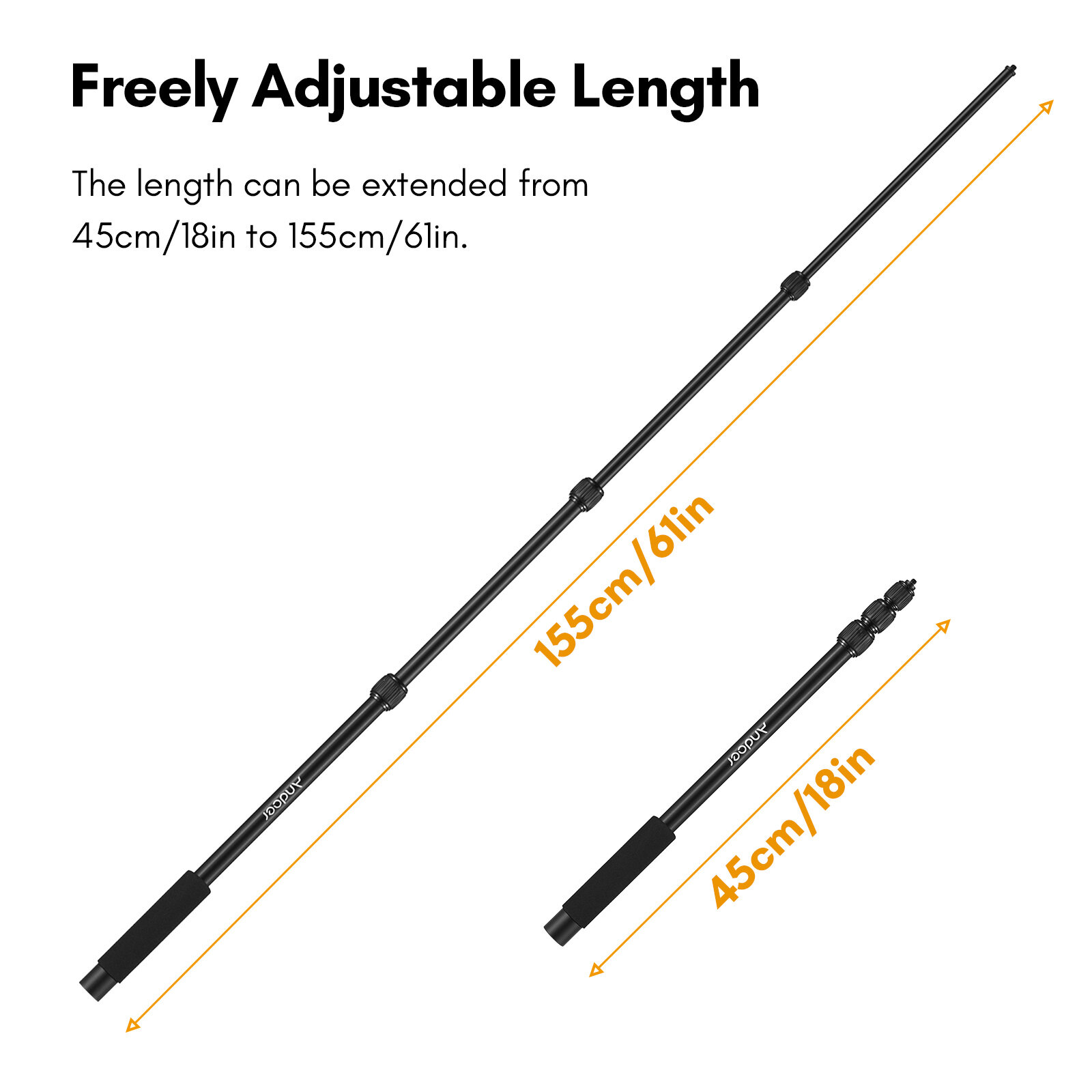 Length: 45cm-155cm/18in-61in(4-section), 40cm-155cm/ 15.7in-61in(5-section)