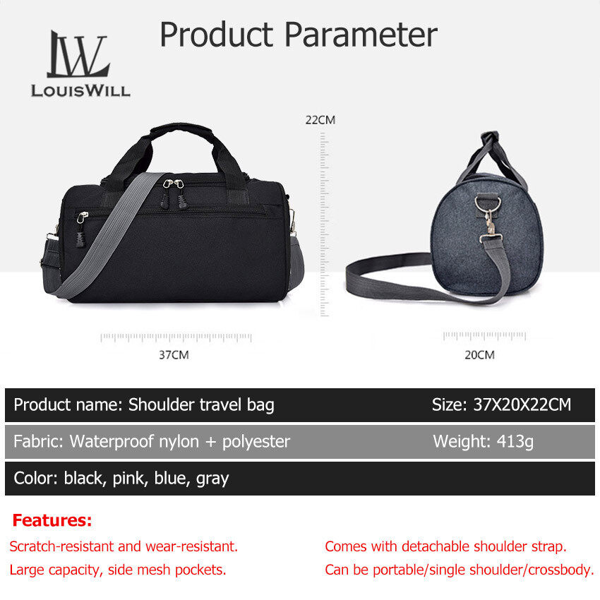 LouisWill Sports Gym Bags Training Fitness Travel Handbag Duffle Shoulder Carry Bags Sling Bag Yoga Mat Sport Bag with Detachable Shoulder Strap