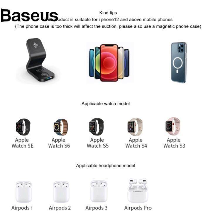 Baseus B-16 15W Max Magnetic Wireless Charger 3 in 1 Charging Station for Smartphone / Smart Watch / Earphones