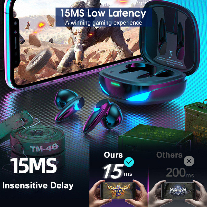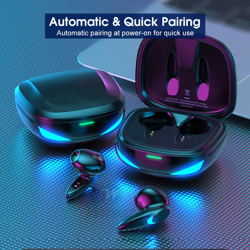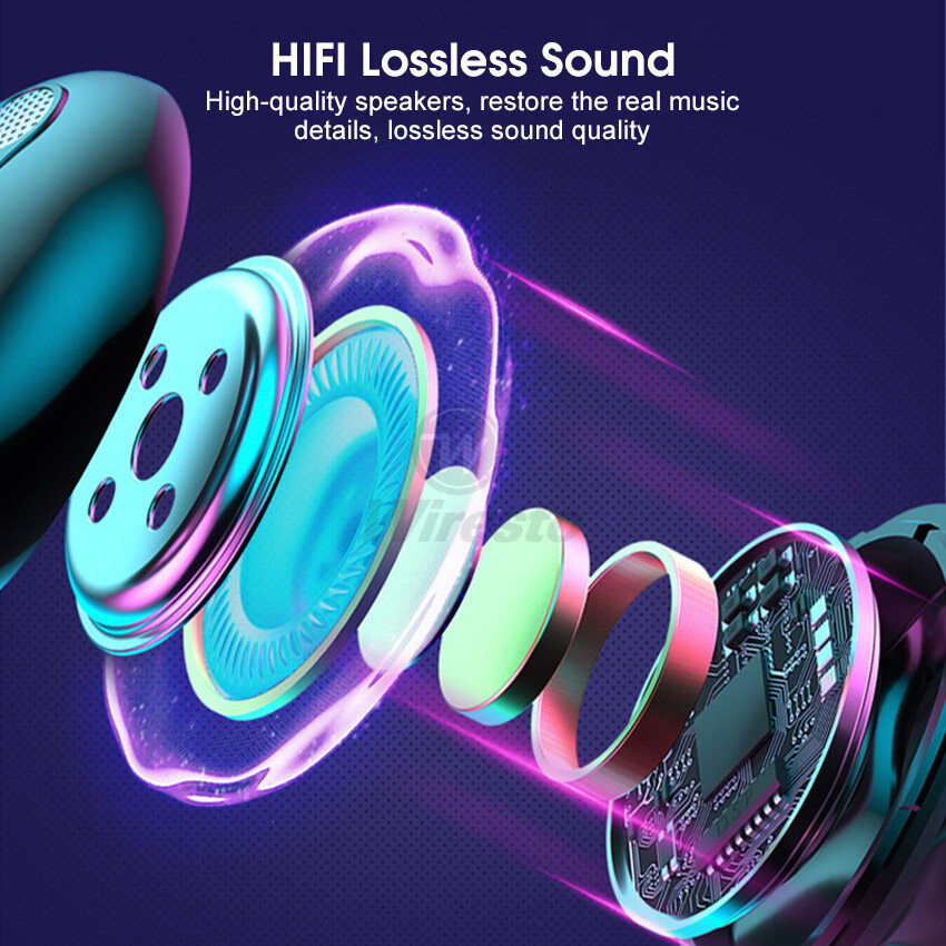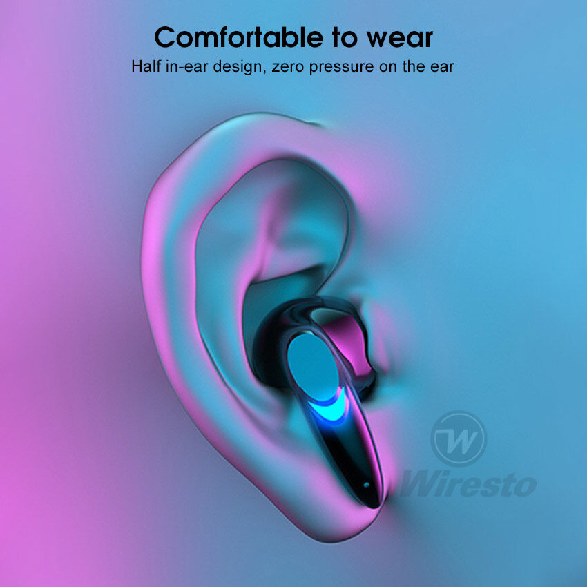 Wiresto TWS Earphone Bluetooth 5.2 Half In-Ear Headphones Noise Canceling Earphones Sports Earbuds Waterproof Headsets HIFI Stereo Earbuds Gaming Headset with Breathing Light Free Storage Bag