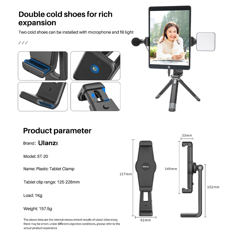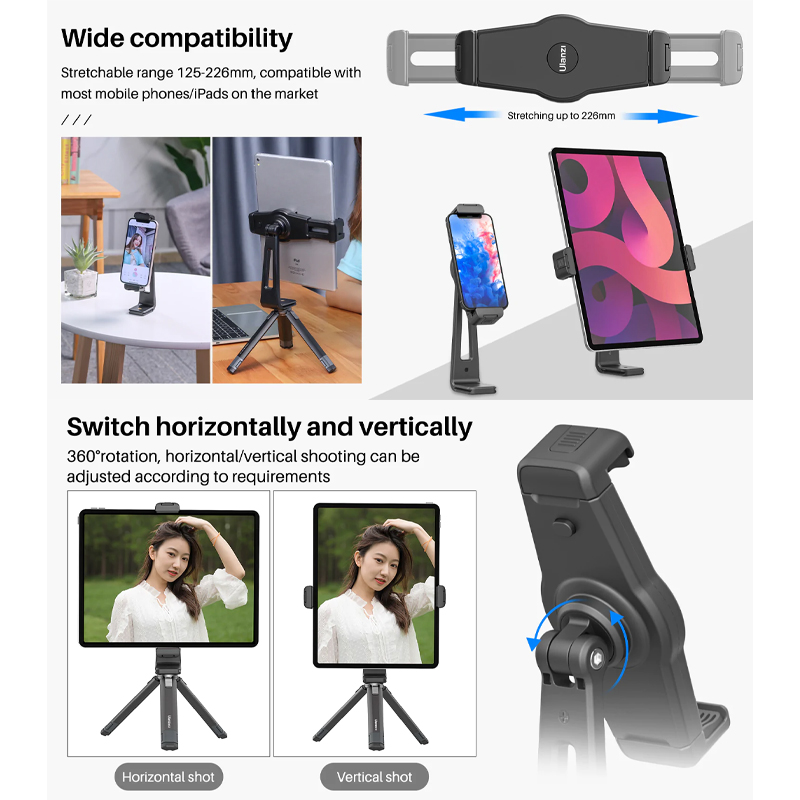 Ulanzi ST-20 — (Plastic 360° Rotation Phone / Tablet Clamp with 1/4" and Arca-Swiss Mount)
