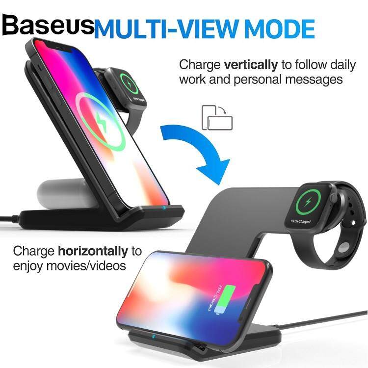 Baseus F11 Pro 3 in 1 Wireless Charger 15W Fast Charging Station for iPhone / Samsung / Apple Watch / TWS Earphones