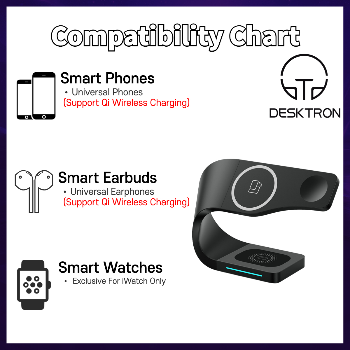 - 【Compatibility】Charger Stand be appropriate for Wireless Charging iPhones AirPods, Apple Watch, The base also has two charging ports (Type-C/Usb) that can charge other devices