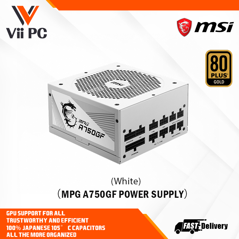 MSI MPG A750GF 750W/80Plus Gold/Full Modular/Flat Cables/100% Jap Capacitors/10yrs Warranty PSU-Black and White