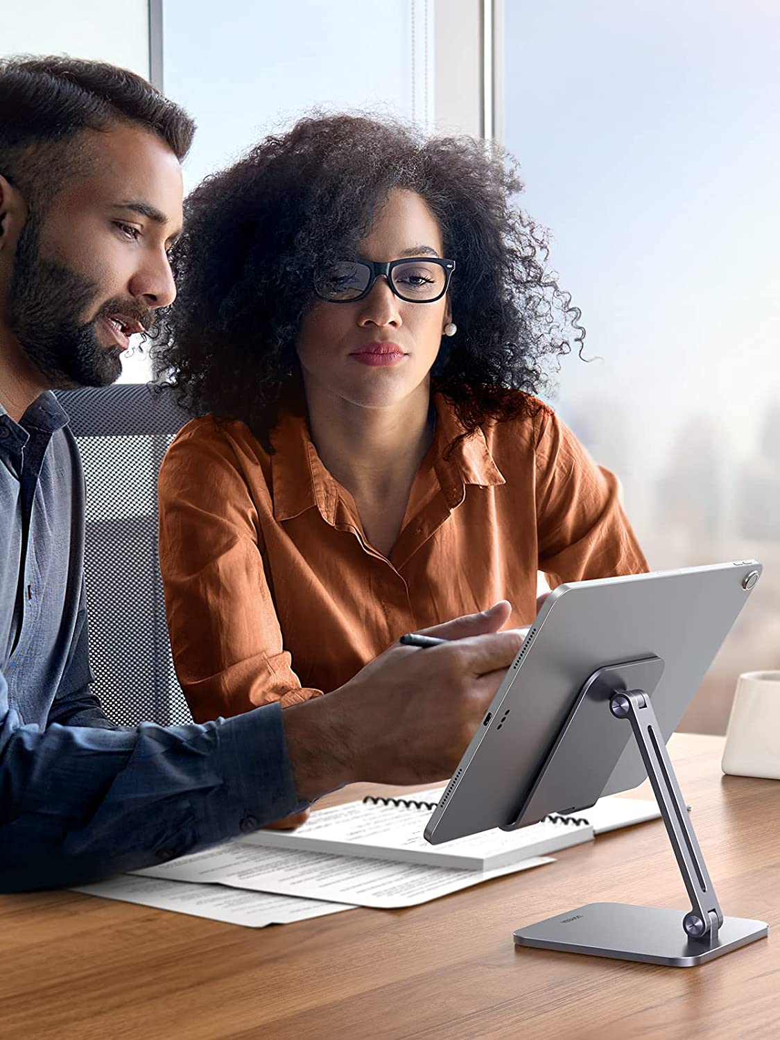 - Heavy Duty Ipad Holder: Made of full aluminum alloy material, along with a thicker, bigger base and a center of gravity design, this ipad stand for desk adjustable aims to achieve superior stability and durability. Compared with the ordinary tablet stand for desk using plastic, the weight is increased by up to 50% (14 ounces) and larger (4.72*6.7 inches), and it provides 10 times stable support without shaking, which is very suitable for large-sized tablets, such as iPad Pro 12.9 Stand.