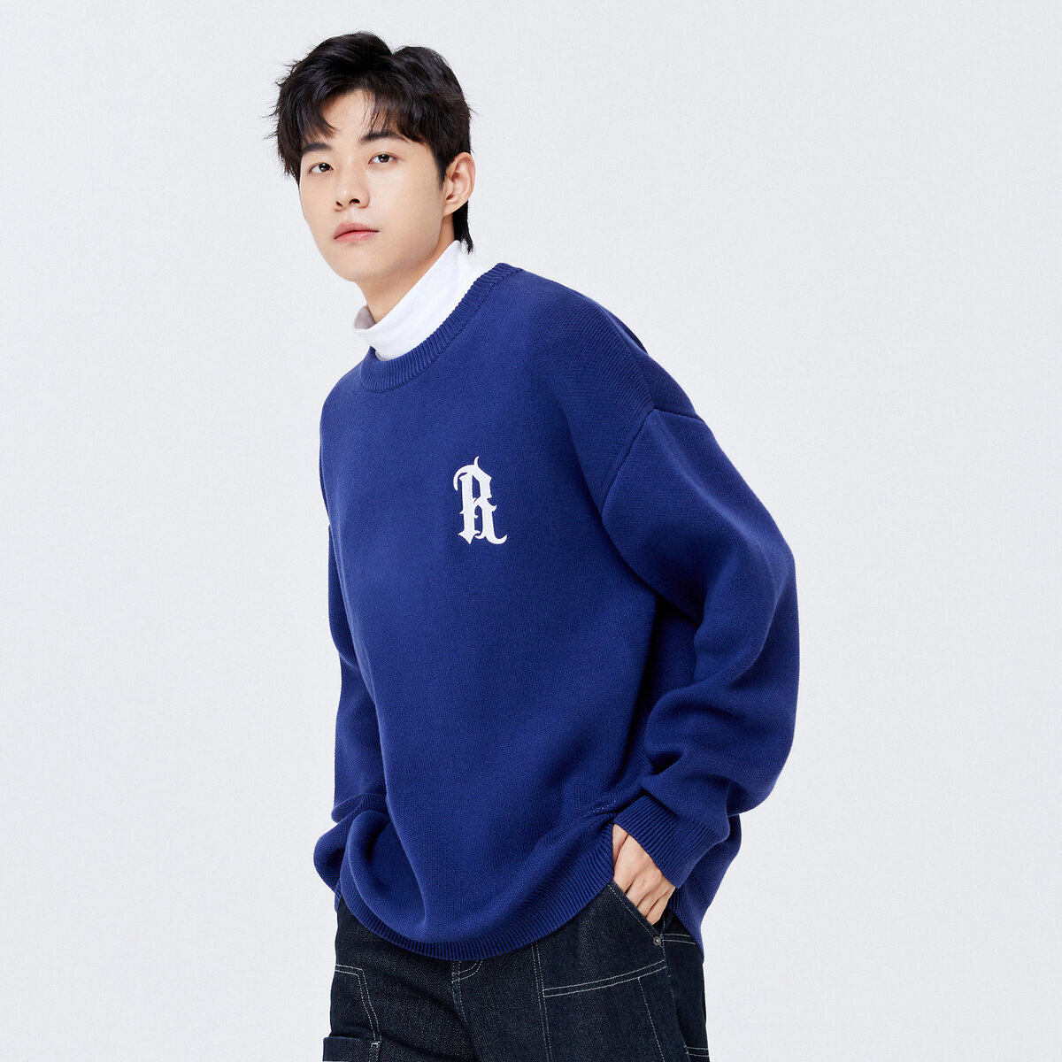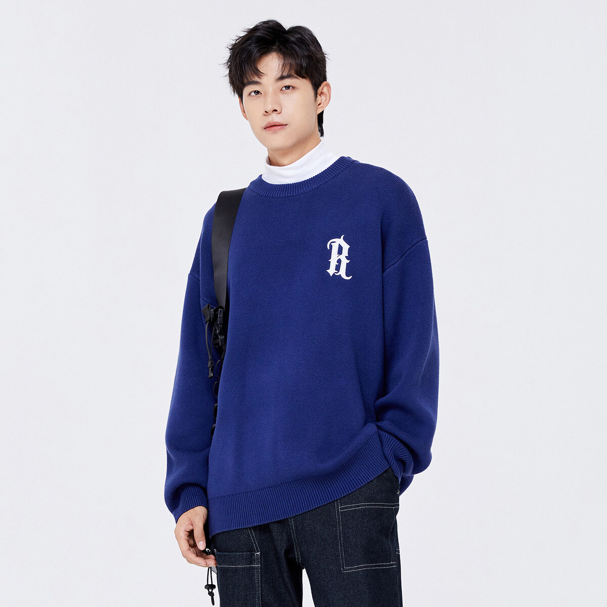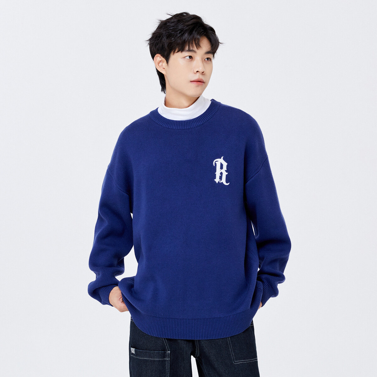 Semir Sweater Men 2022 Winter New Knitted Sweater Letters Korean Version Off The Shoulders Trend Comfortable Round Neck Top