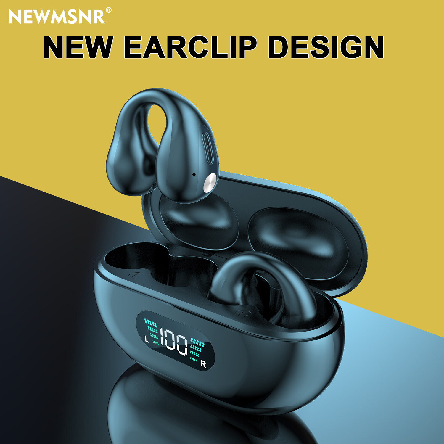 Newmsnr TWS Bluetooth 5.3 Wireless Earphones With HD Mic Super Bass Bone Conduction Bluetooth Earphone Earclip Design In Ear Headphones Touch Control Headphone LED Earbuds Waterproof Sports Headset