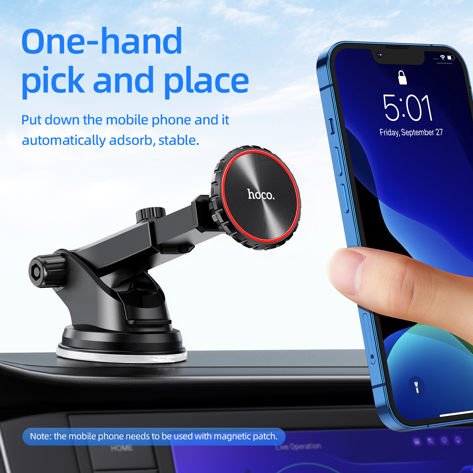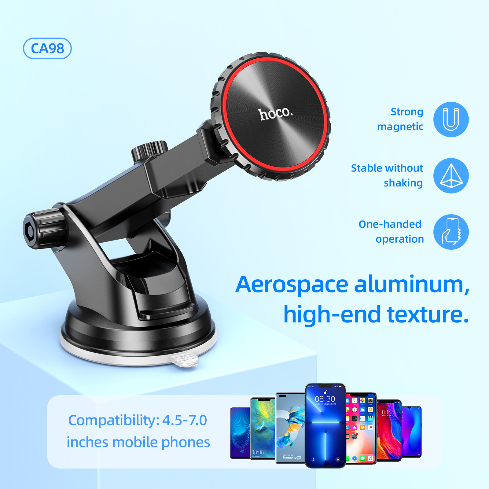 Hoco CA98 Original Magnetic Phone Holder For Car Windshield Cradle Strong Sucker Dashboard Mount Phone Stand For All Smartphones Universal
