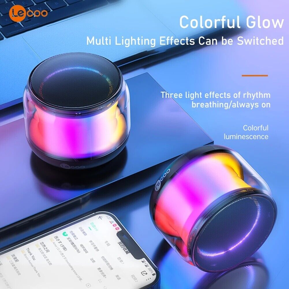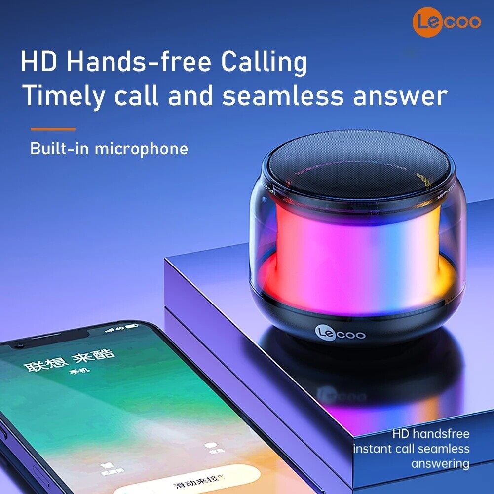 LECOO DS106Pro Mini Portable Speaker Multi-Function Bluetooth Speaker Compact Lightweight Cool Lighting Effect 360-Degree Stereo Surround Sound Heavy Bass For Laptops Tablets Desktops TVs Mobile Phones