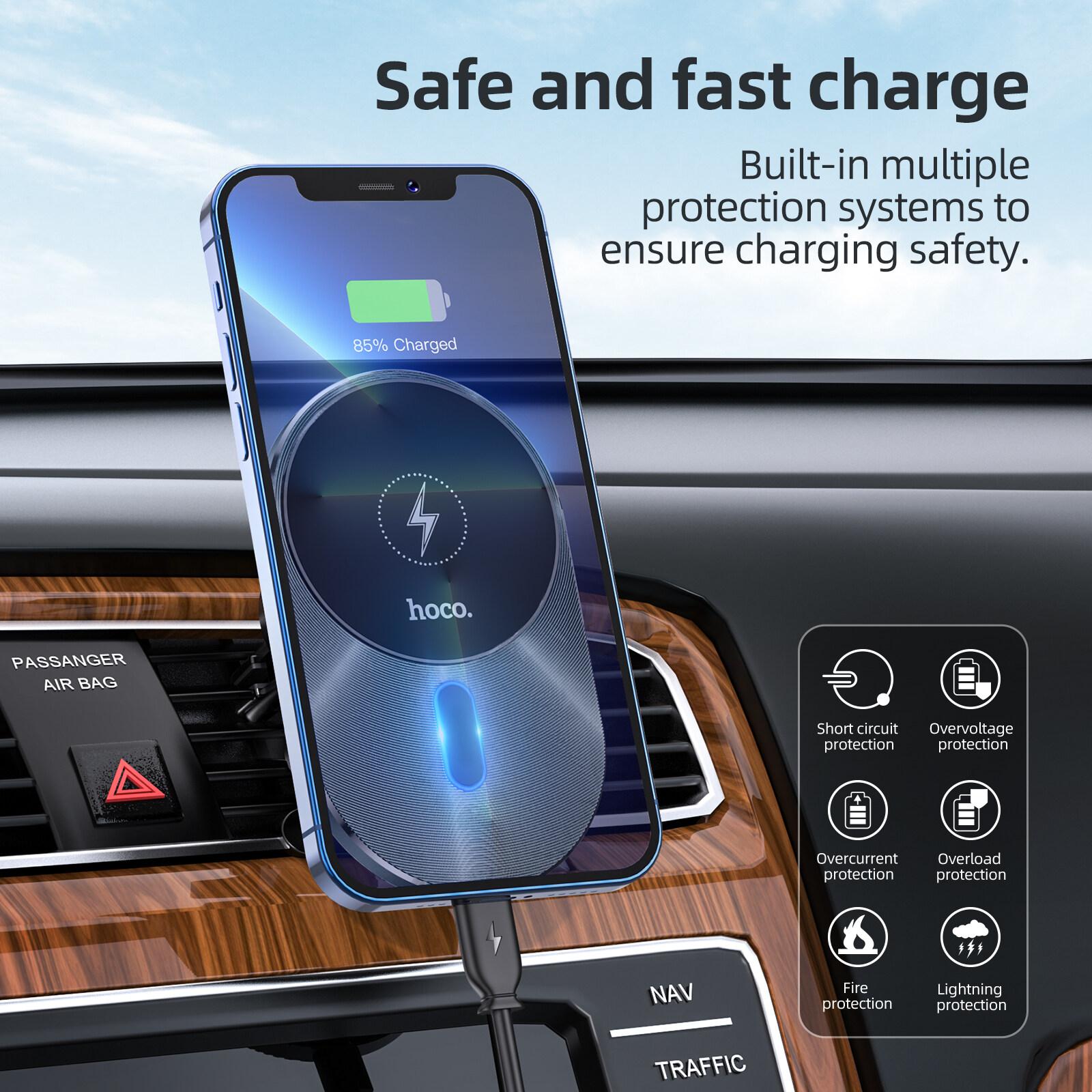 HOCO CA91 100% Original 15W Magnetic Wireless Fast Charging Car Holder Air Vent Fast Charging Car Phone Holder For Samsung Android Smartphone Universal