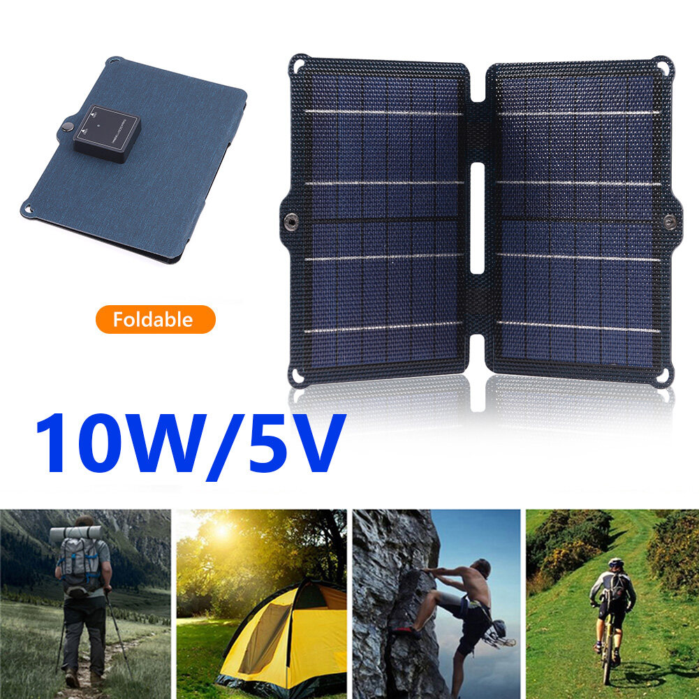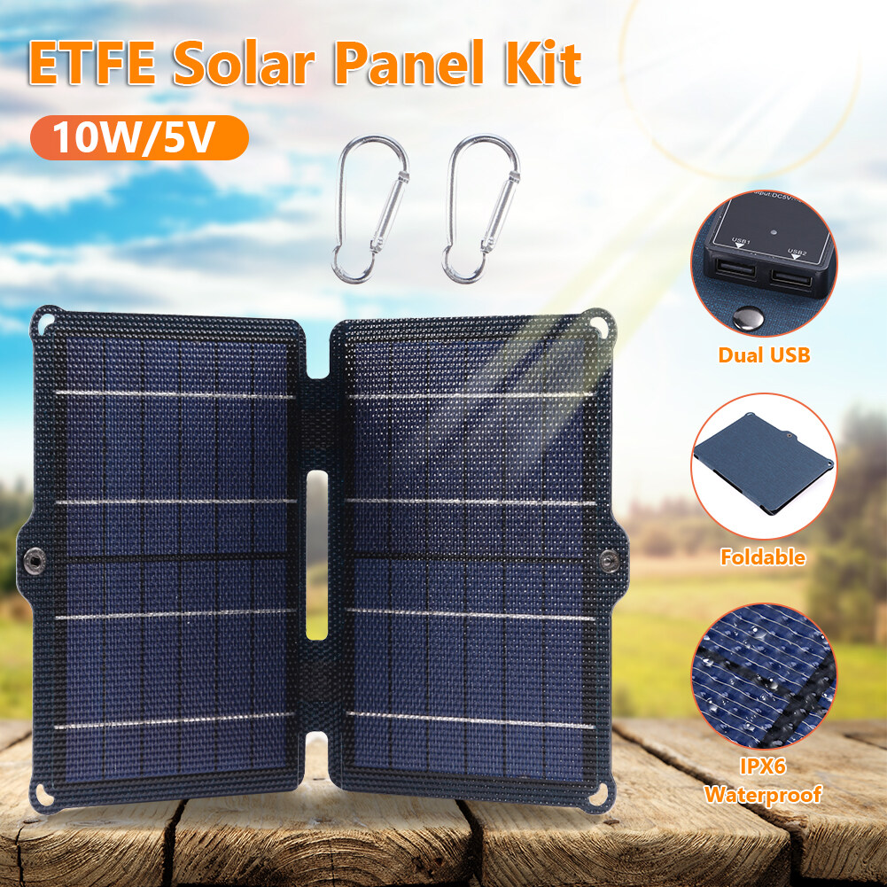 Sell Well【HOT 】10w 5V Foldable Solar Panel Dual USB Output Ports Waterproof Camping Solar Panel Pack with Carabiner Solar Battery Chargers Bi-fold for Mobile Phone