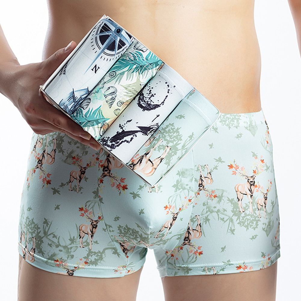 4 Pcs Ultra Soft Micro Fiber Men Boxer Trunks Floral Printed Man Briefs Underwear Men Plus Size Panties