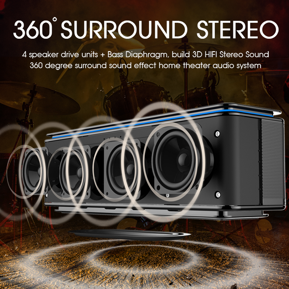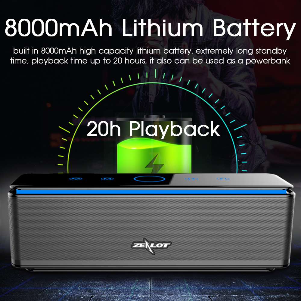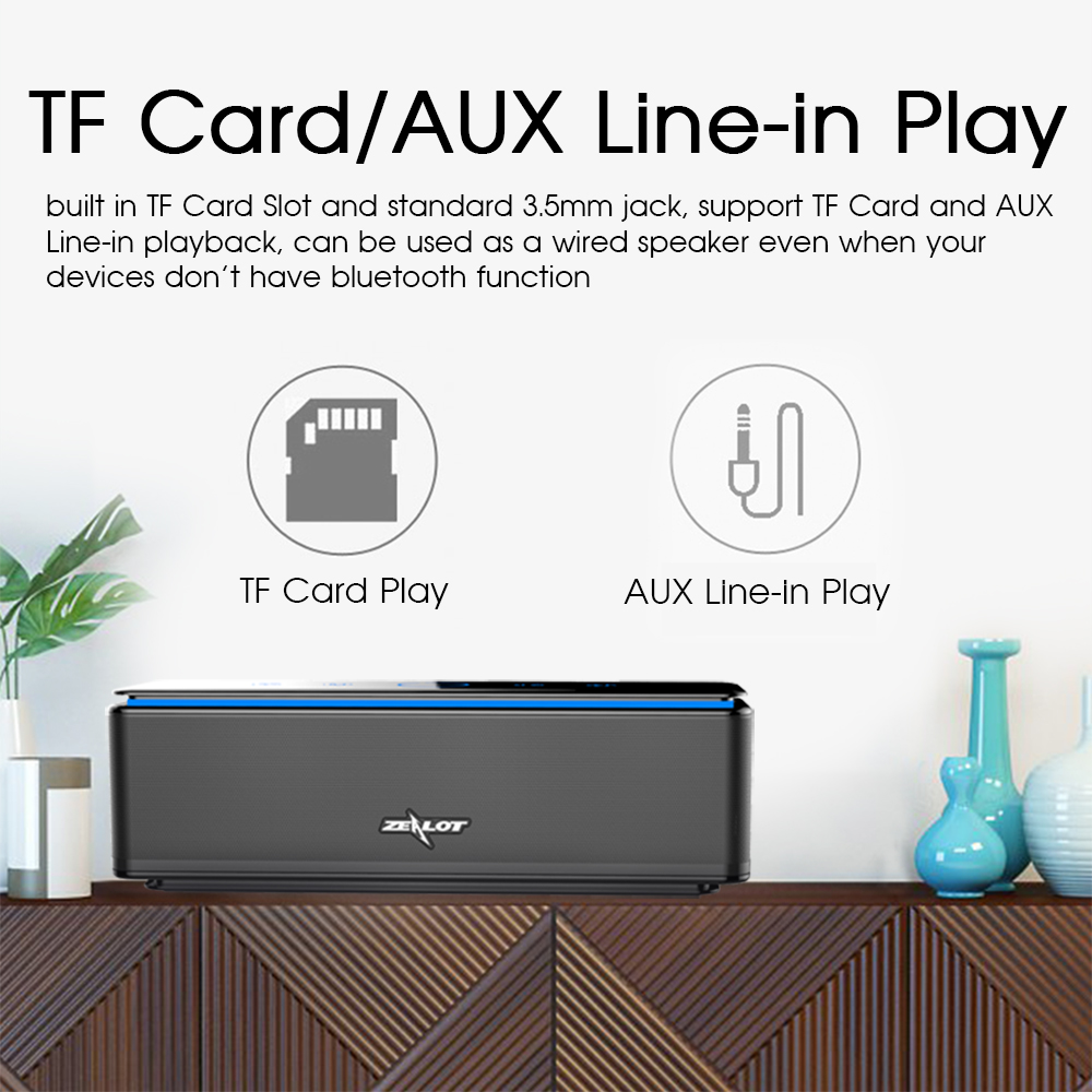 Zealot S7 3D Wireless Speaker Bluetooth Soundbar Powerful Bass Stereo Touch Control Portable 26W AUX TF Card 20 hours Playback Home Outdoor Use