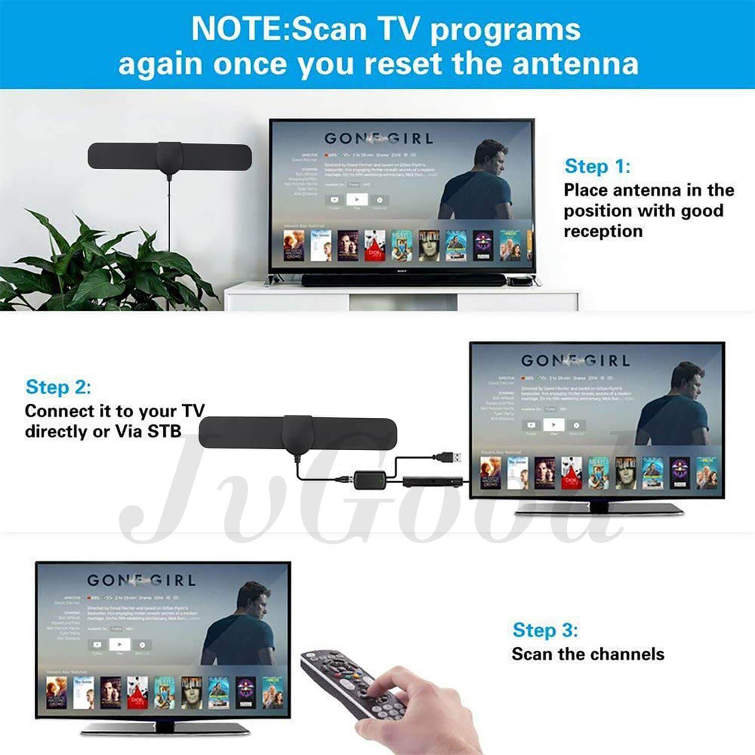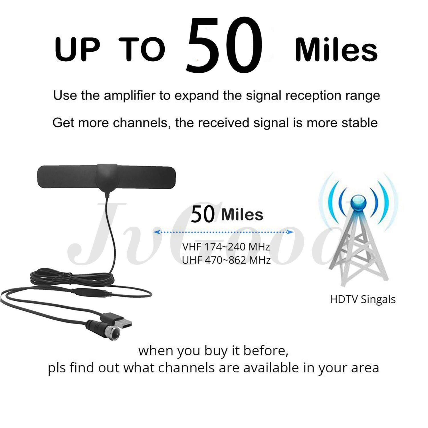 JvGood Amplified HD Digital TV Antenna Long 50 Miles Range Support 1080p TV's Indoor Powerful HDTV Amplifier Signal Booster- 4M Cable