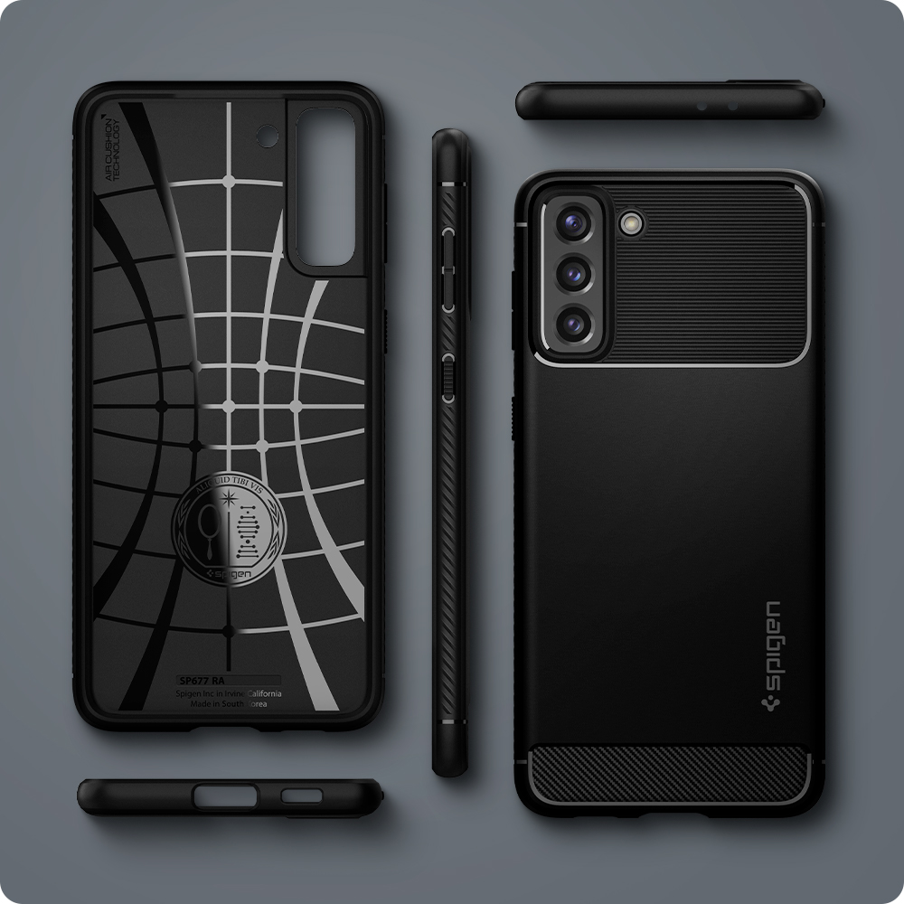 Inspired by car design, Rugged Armor® secures the device in a timeless and streamlined body. Its slim frame is textured with carbon fiber detailing and subtle glossy accents. Timeless design with amplified quality and overall protection.