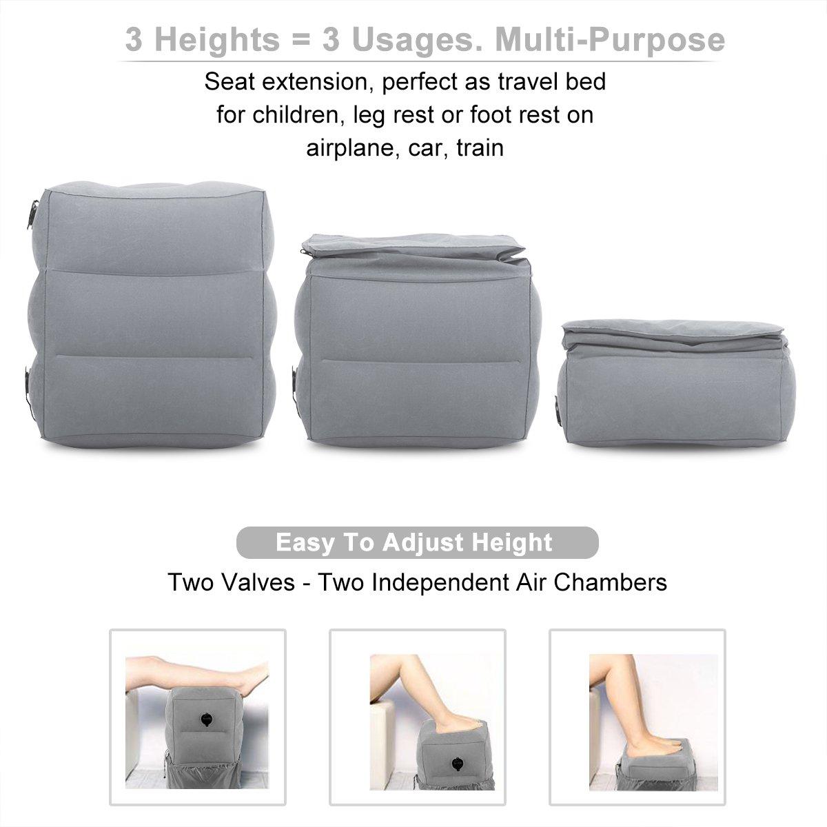 Travel Pillow - Inflatable Adjustable Height Travel Foot Leg Rest Pillow During Airplanes Flight for Adult and Kids with 1 2 3 Layers