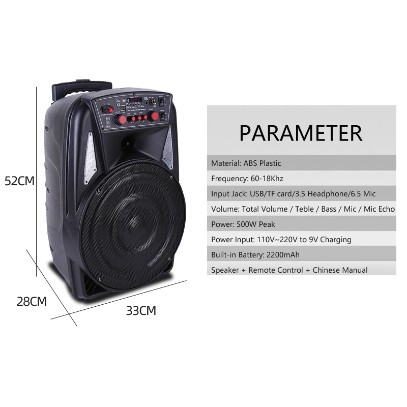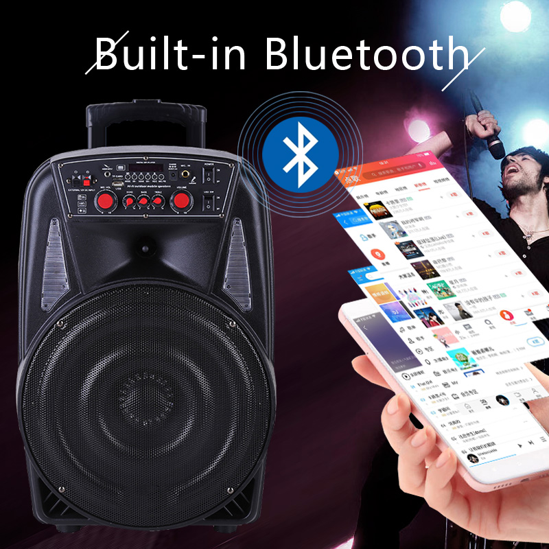 Long-Lasting Rechargeable Battery (2200mA), Charges Through Ac Or Dc With Cable To Charge In The Car (Cable Included).The long-lasting battery provides you 3-4 hours.Bluetooth-Enabled: Pairs Effortlessly To Other Bluetooth Devices, Compatible With All Phones and Tablets.Retractable Handle, Wheels At The Base, Stationary Handle For Easy Transport.Comes with 2 Mic(Choose) And Mic priority function.Powerful 40W-Max 500W Of Output Power, Includes Usb Port And Headphone jack-In Ports.