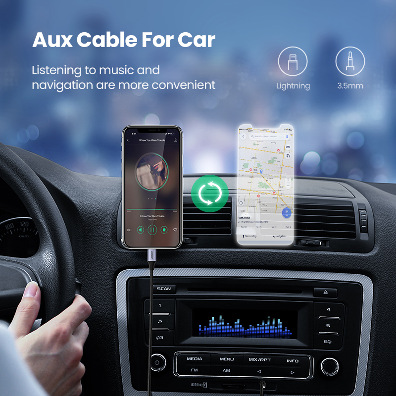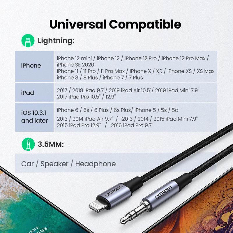 UGREEN MFI 1 Meter Aux Cable, Apple MFi Certified Aux Cable for in Car Nylon Braided Aux to Lightning Cable iPhone iPad Lightning to 3.5mm Headphone Adapter Compatible with iPhone 13 pro max iPhone SE