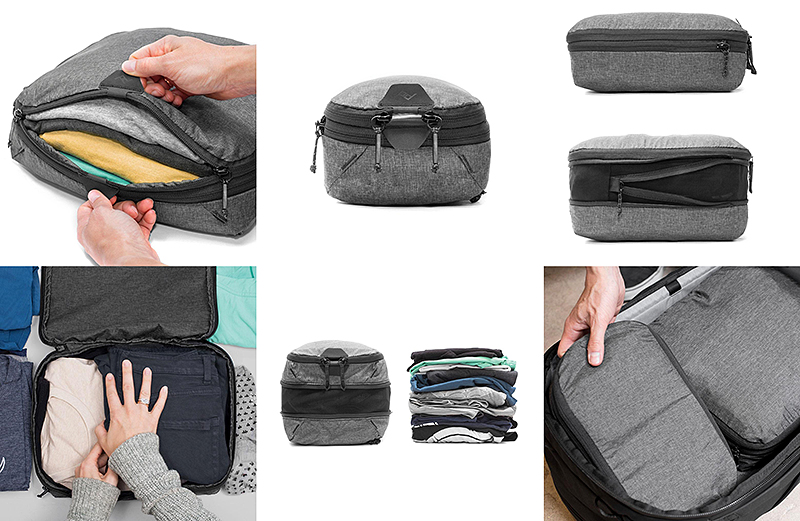 Compressible, easy to access, and instantly dividable, Peak Design Packing Cubes are functionally and aesthetically unmatched. A unique tear-away zipper lets you access contents quickly, unlike standard packing cubes with U-zip openings. An internal divider lets you separate clean and dirty clothes, and allows each compartment to expand/contract based on its contents. And, an expansion/compression zip provides additional space, or the ability to compress contents once packed. Outershell is a beautiful, self-healing 70D nylon/poly blend.