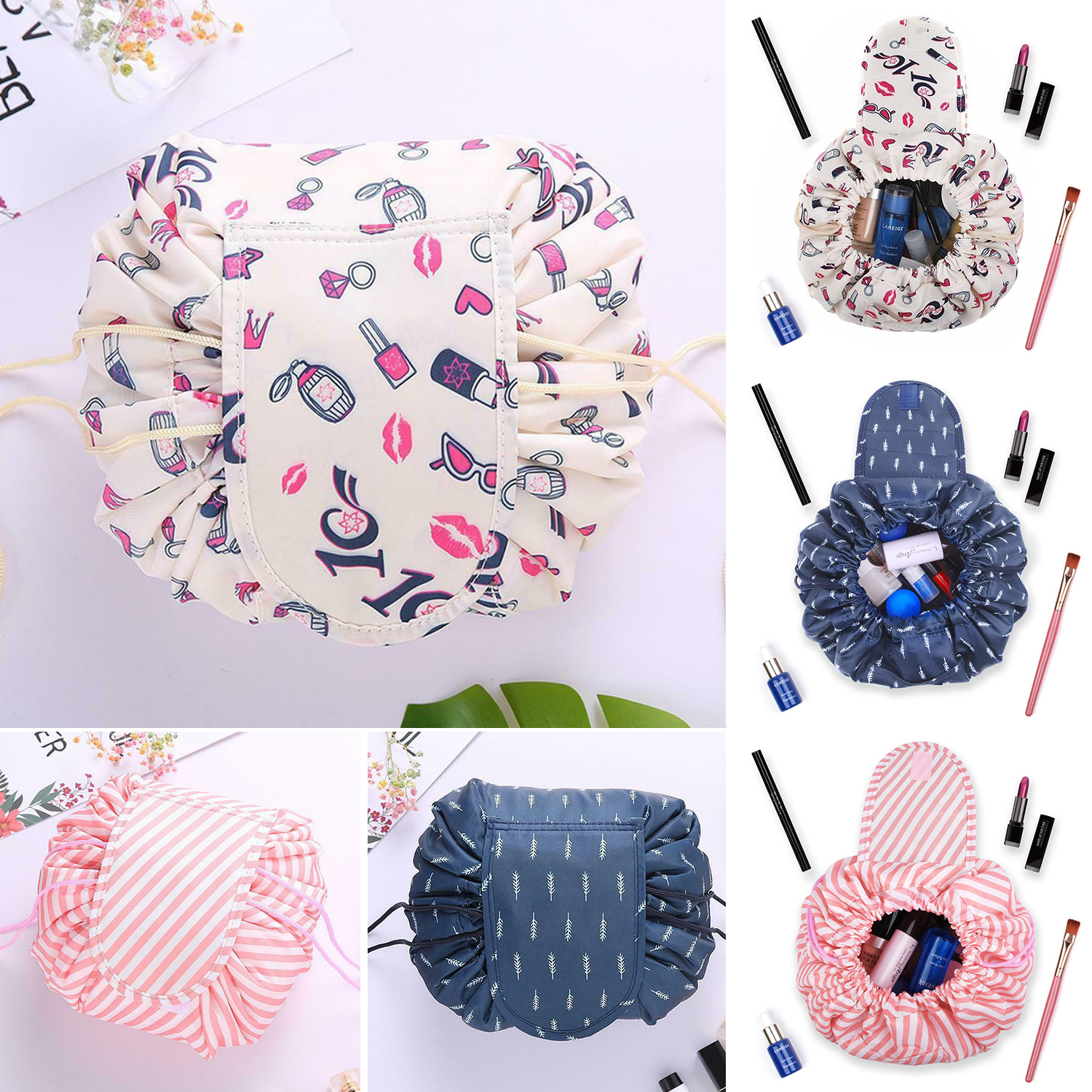 [SG Seller]Nordic Style Foldable Fabric Storage Box Portable Make Up Bag Case Drawstring Cosmetic Bags Magic Storage Travel Pouch Bag