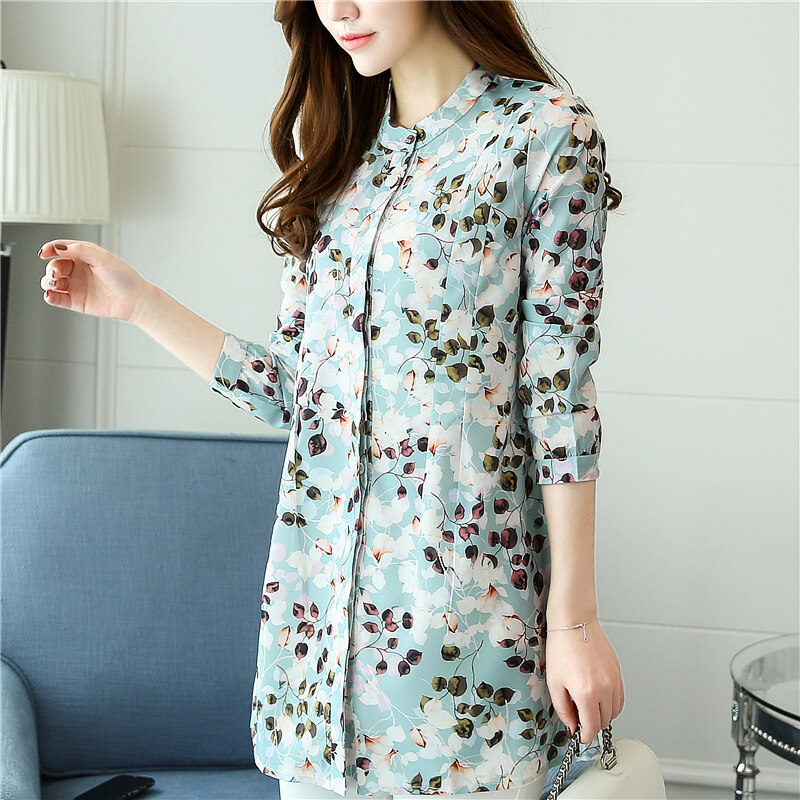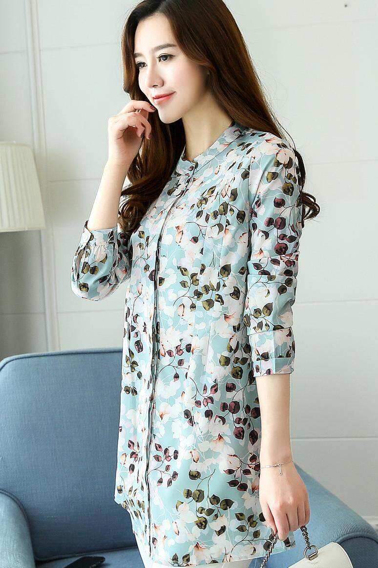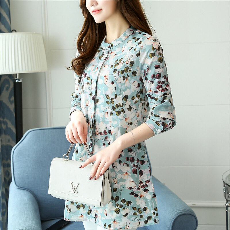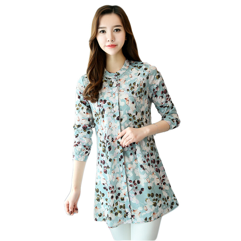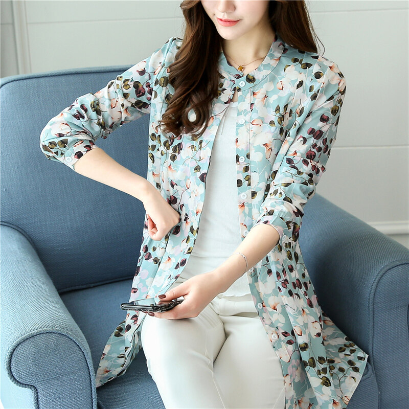 AFEG new Korean Women long-sleeved printed chiffon casual fashion wild temperament long section of elegant blouse
