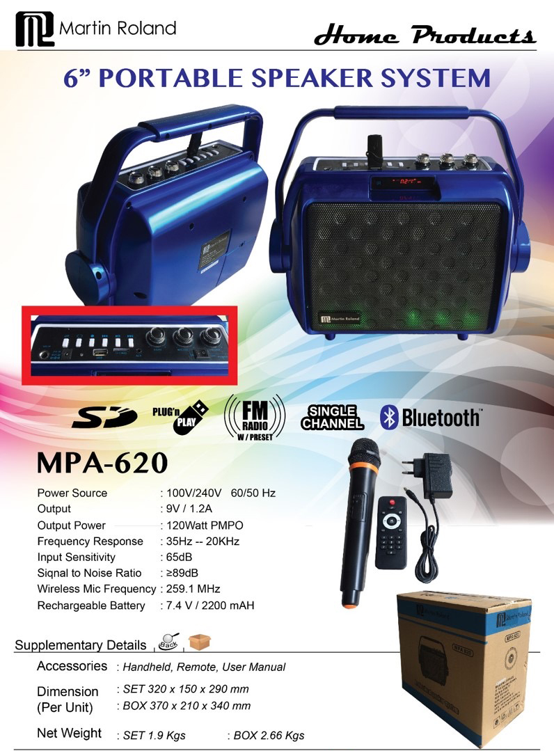 (Bulky) MARTIN ROLAND MPA-620 PORTABLE PA SYSTEM WITH MICROPHONE AND BLUETOOTH CONNECTIVITY