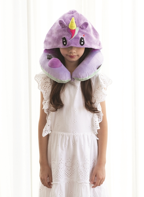 Travelmall 3D Inflatable Neck Pillow with Patented Pump and Hood (Unicorn)