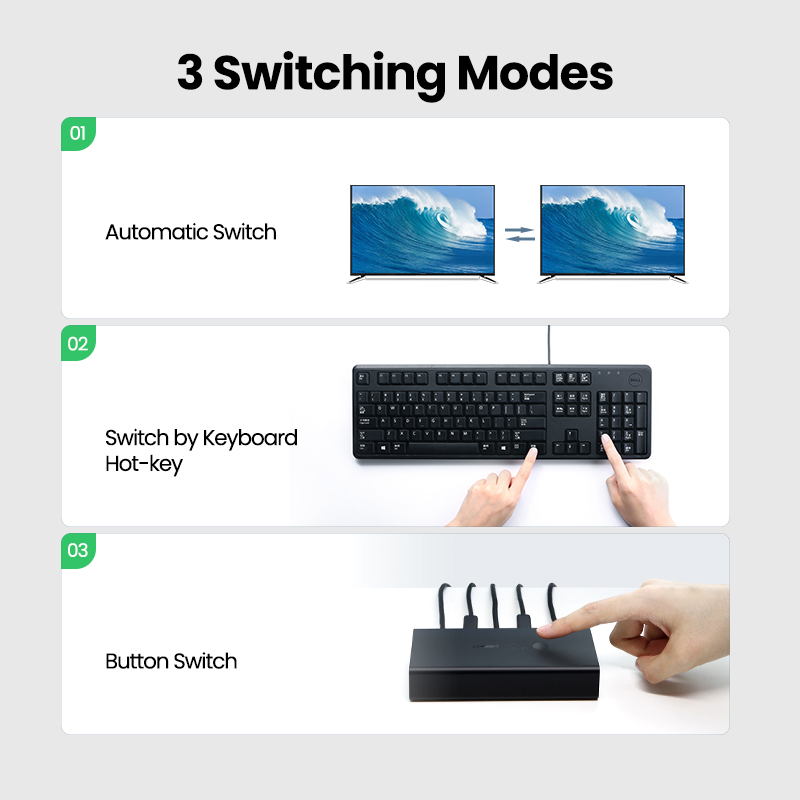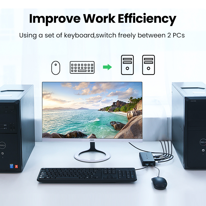 UGREEN USB HDMI KVM Switch 4K 60Hz Ultra HD 2 IN 1 HDMI Switcher Box and VGA to USB KVM Splitter for Sharing Monitor Printer Keyboard Mouse