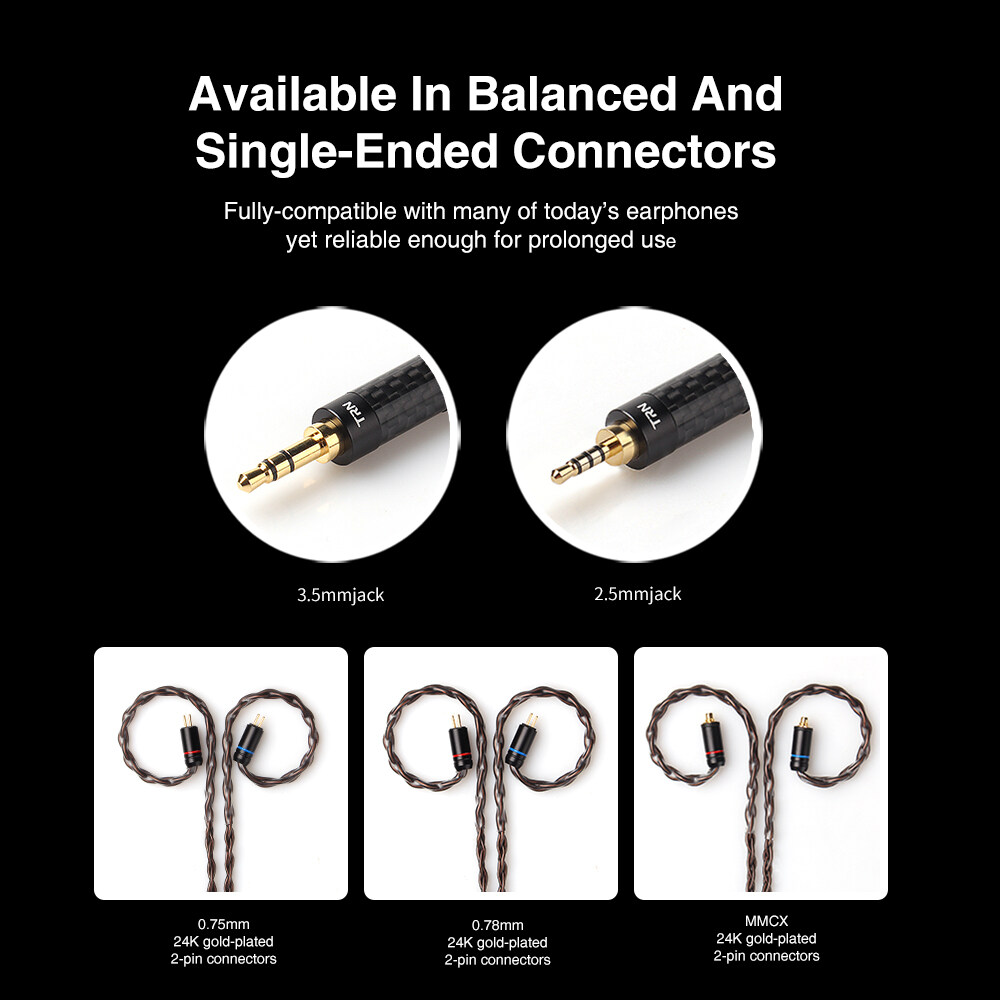 TRN T4 8 Core Single crystal copper cable Earphones cable 2PIN\MMCX Cable Connectors