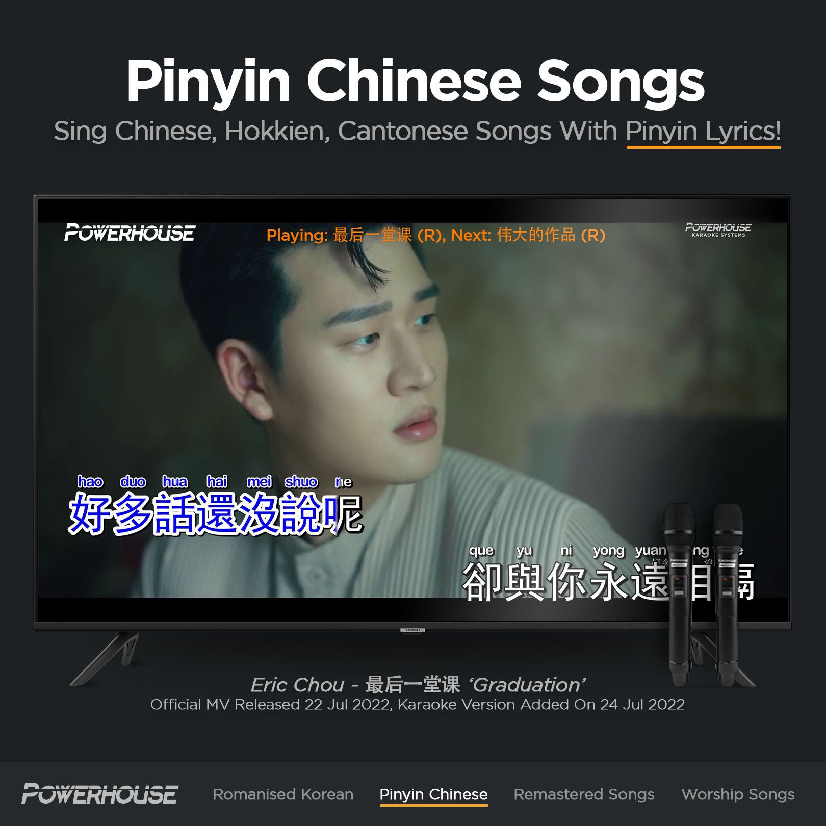 Always wanted to sing 海阔天空 but do not know Cantonese? Now you can with Powerhouse Karaoke Systems! Powerhouse Karaoke Systems has re-created thousands of Hokkien and Cantonese songs to come with Pinyin lyrics for everyone to sing!