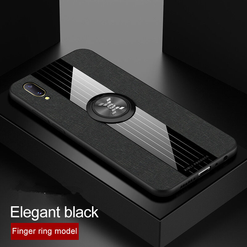 Hontinga Casing Case For VIVO V11 Pro Case Fabric Cloth Back Case With Metal Finger Ring Holder Matte Protective Hard Cover Phone Case Shockproof Cases Coque Handphone Hard Case For Boys Girls Men Wom