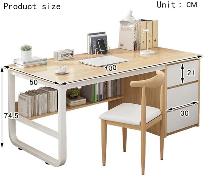Computer Desk Large Capacity Drawer Home Desk Bedroom Writing Desk(E)